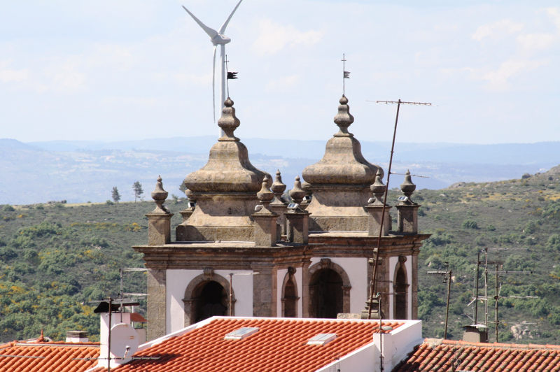Nas torres sineiras existem janelas e postigos de avental e óculos.